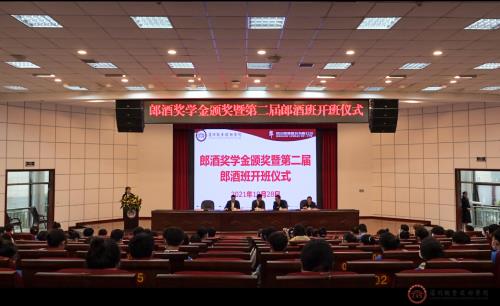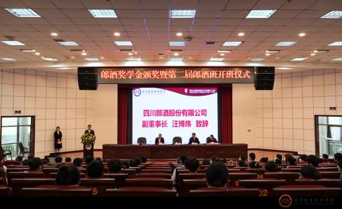 四川郎酒股份有限公司副董事长汪博炜在致辞中介绍了郎酒公司近年来在人才队伍建设上的总体思路,并强调郎酒根在泸州,希望与家乡人共享发展红利,推动“产、学、研、用”有机融合,为泸州地方经济发展提供强有力的人才支撑。来自首届郎酒班的邱浠、袁磊等10名学员,分别获得郎酒一等奖学金7500元、二等奖学金5000元、三等奖学金3000元,汪博炜与吴代彬共同为获奖同学颁奖。公司党委常委、组织人事处处长曾国锋宣读了第二届郎酒班学员名单,来自酿酒技术、食品质量与安全、市场营销、机械制造及其自动化等10个专业共计66名员工成功入选第二届郎酒班。