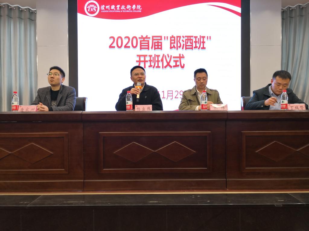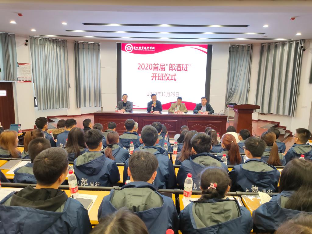 11月29日,学校与四川郎酒股份有限公司“郎酒菁英班”开班仪式在萧秋厅举行。四川郎酒股份有限公司人力资源总监张伟,公司党委副书记、经理杨宗伟以及公司和学校相关负责人出席会议。公司郎酒学院、商学院、机械工程学院等五个二级学院的66名员工参加会议,会议由郎酒公司党总支书记丁瑞赞主持。