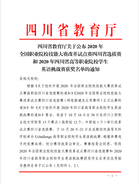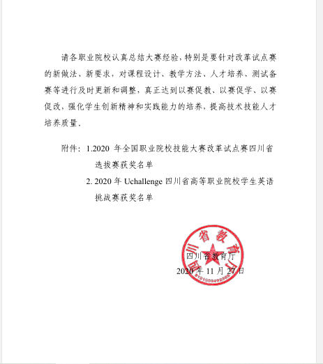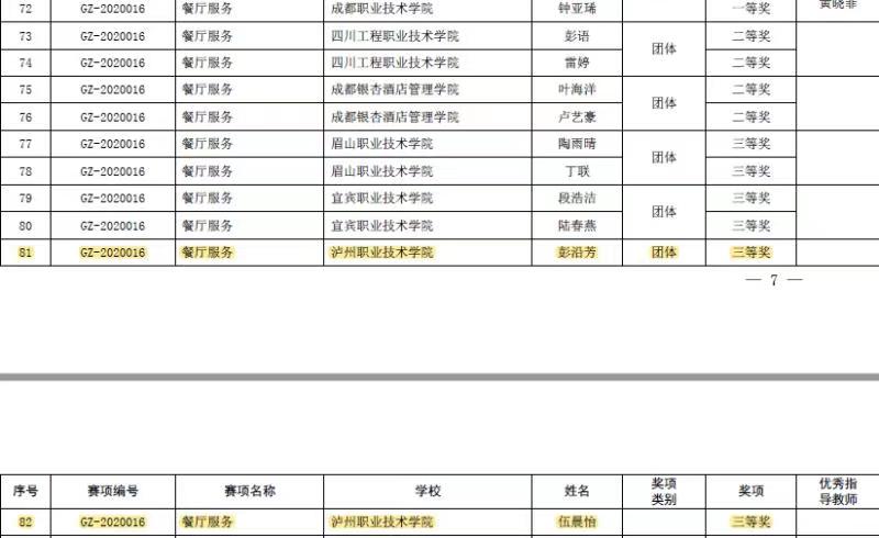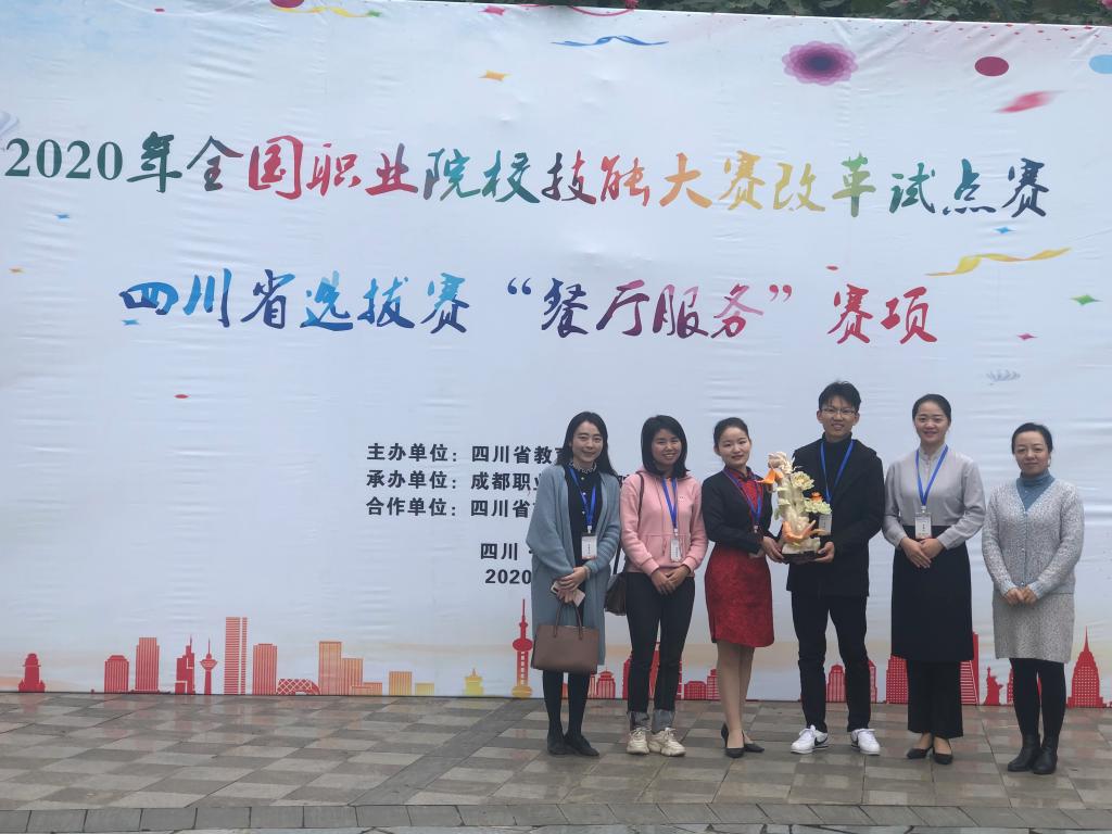 本次选拔赛由四川省教育厅主办,设有中餐服务主题宴会设计和西餐服务休闲餐厅服务两个赛项,全省共有13支院校参赛队参加,经过激烈角逐,仅有6支参赛队获奖。公司酒店管理专业团队克服了赛项改革竞赛标准差异大、备赛时间短、任务重等困难,获得团体三等奖的成绩。