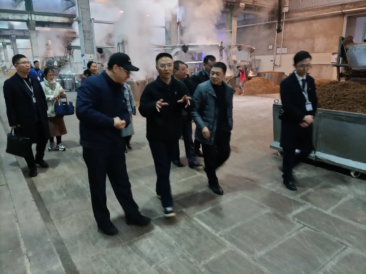 杨宗伟一行参观了酿造车间、酒体储存车间、酒体输出车间、发送包装车间及白酒品评室,通过参观调研对郎酒石洞基地有了更全面的认知和了解,也为下一步学校龙涧酒庄的建设提供了思路和参考,并为员工培养、实习、就业等方面提供了更广泛的合作空间。