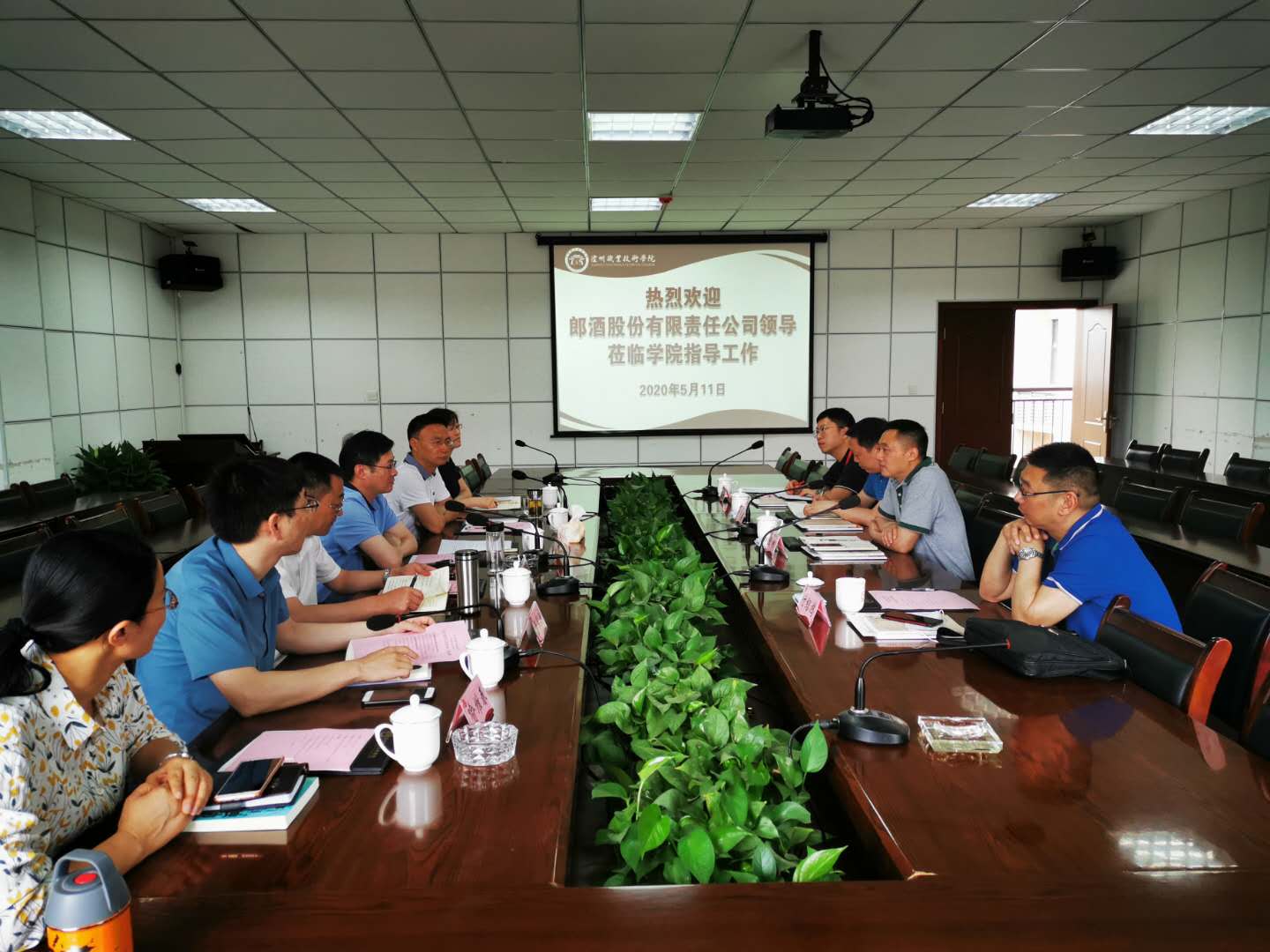 5月11日,四川郎酒股份有限公司人力资源总监张伟、四川省古蔺郎酒厂有限公司人力资源部部长何攀荣一行到公司开展校企合作交流。公司党委书记何杰,党委副书记、经理杨宗伟,党委常委、豪能公司党总支书记、统战部部长尹林,郎酒公司党总支书记唐家州,郎酒公司党总支副书记喻维春,郎酒学院副经理梁陶参加交流座谈。会议由唐家州主持。