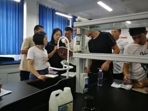 来自郎酒厂公司二郎基地的学员们参加了这次实训。实训内容涵盖《白酒分析与检测》、《实用酿酒生物化学基础》等课程,酿酒技术教研室主任吴冬梅老师、薛正楷博士承担了实训指导工作。