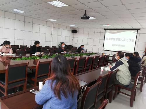 唐家州就做好重点工作、疫情防控工作及开学前后工作提出五点要求:一是全体教师抓紧时间落实推进优质校建设项目和诊改工作,要确保工作按时保质保量完成;二是努力做好专业建设和课程建设工作,努力提升公司产品水平和质量;三是疫情防控工作不能丝毫放松,强化观测统计,切实利用网络系统做好教职工和员工的情况摸排、动态监测,确保师生生命安全和身体健康;四是做好开学前的各项准备工作,根据防控工作要求,严格落实任务,制定开学前后的各项预案,落实好网络教学工作,特别是要做好实训室、宿舍等重点场所的管理。五是加强单招宣传工作。今年特殊的疫情形势,更要动员师生充分利用网络新媒体对外开展形式多样的单独招生宣传工作。