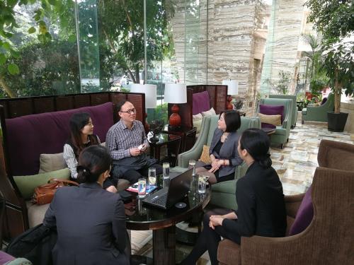2018年4月25日—26日,白酒学院经理刘创宇、党支部书记高娜、酒店管理专业副教授卢薇一行前往成都环球中心天堂洲际酒店实地考察、洽谈校企合作事宜。