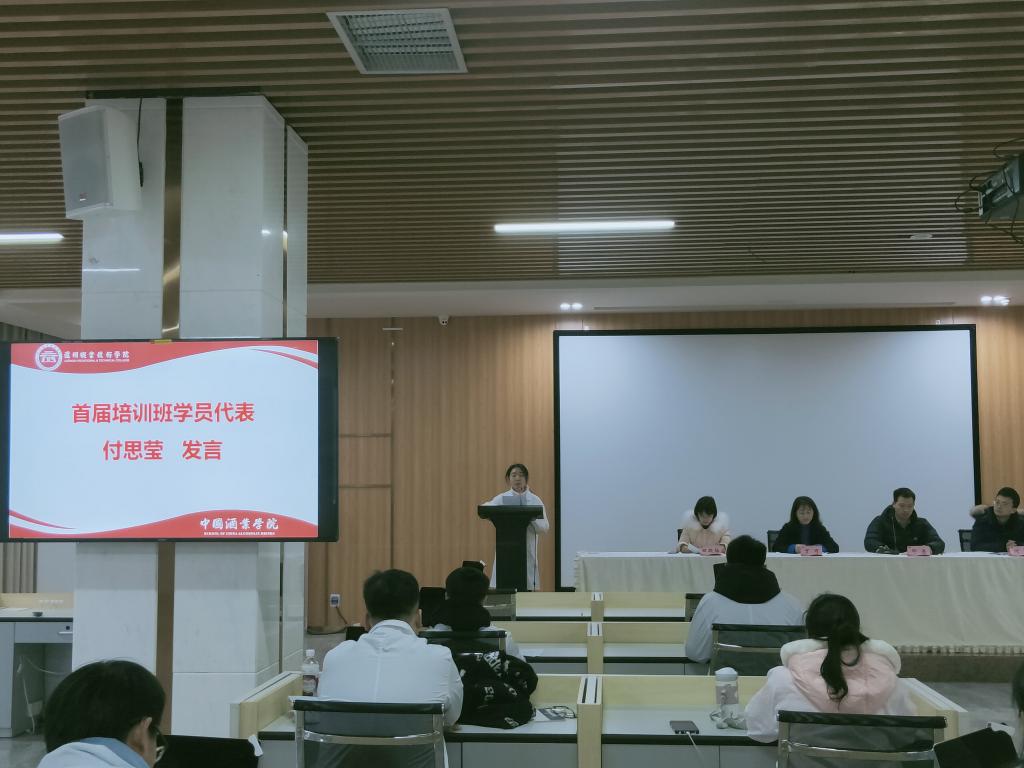 公司党总支书记丁可发表致辞。她对经过一年的筹备,首届品酒师班成功开班表示热烈祝贺,就学校近年发展和酿酒技术专业建设取得的成就进行全面介绍;对学员们提出了殷切希望,并要求相关工作人员做好本次培训的组织管理工作,确保学员学有所获。