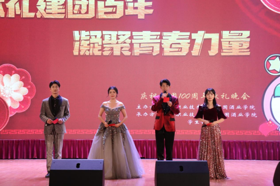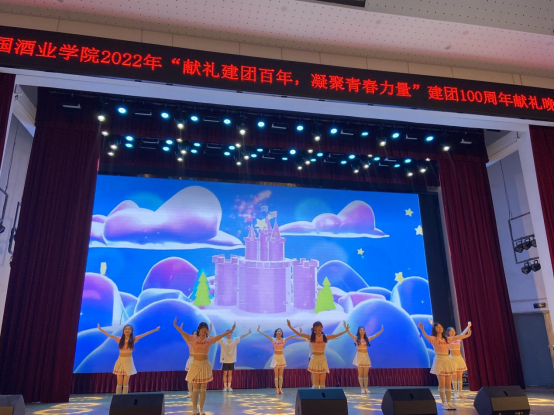 晚会上,同学们通过舞蹈、小品、相声等形式多样的节目表达了对中国共产主义青年团的祝福。