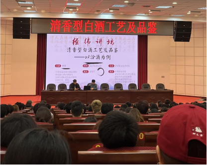 公司党总支书记丁可、经理刘竟成,酿酒技术、食品质量与安全专业师生代表和部分酒企技术骨干400余人参加讲座。